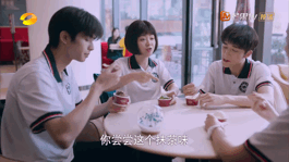 被帮助的同学齐明月想请尖尖吃冰激凌表示感谢,尖尖把两位哥哥都带过来同享福。三个人一起邀请齐明月共同分享各自不同口味的冰激凌,能看到独生子女对于分享的这件事的惊奇和兴奋。